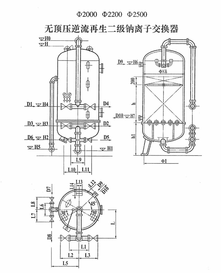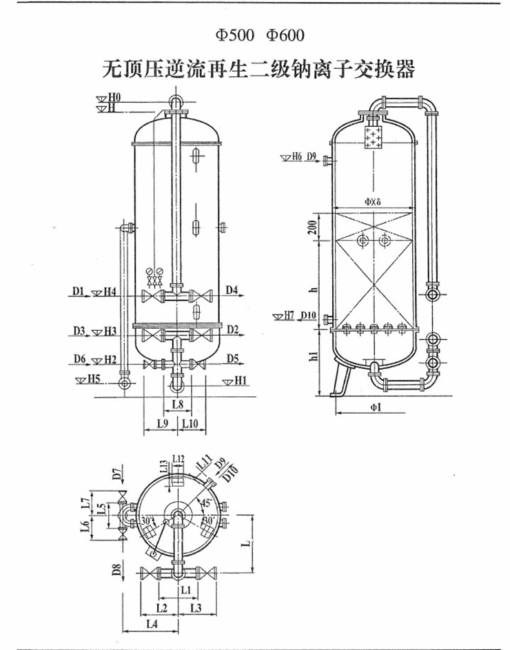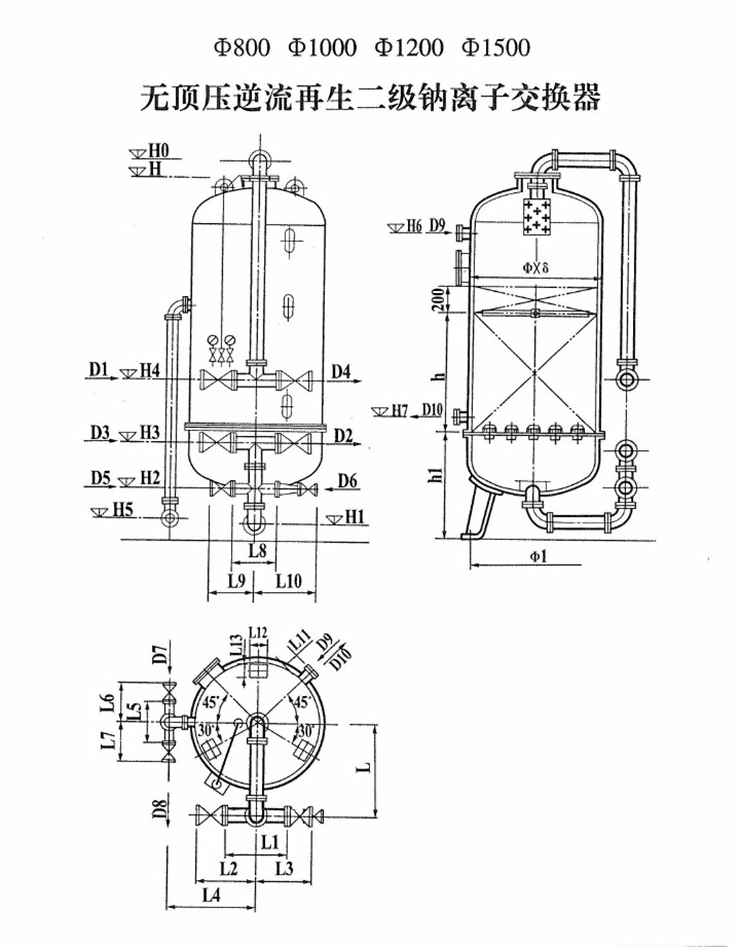 无顶压逆流再生二级钠离子交换器